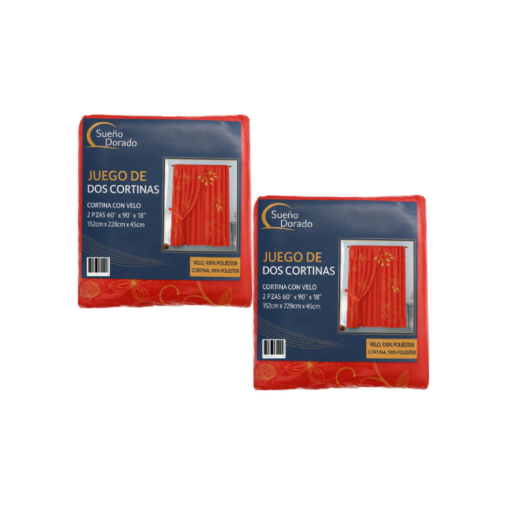 Cortinas con velo rojo 152 cm x 228 cm 45 cm (2 U)