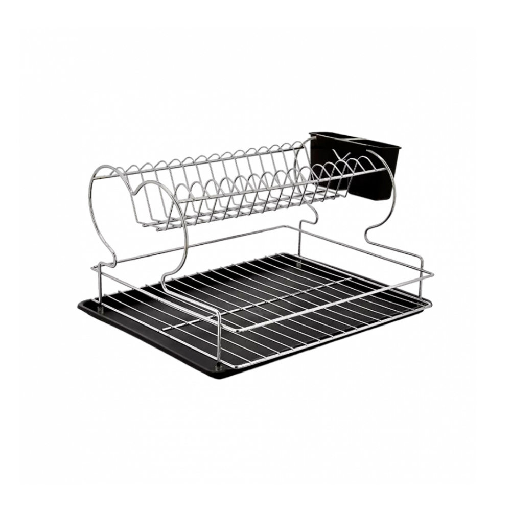 Escurridor metálico de platos de dos niveles con porta cubiertos Perilla