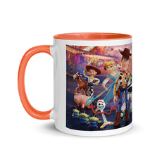 Jarra blanca y anaranjada de cerámica con diseño impreso tema Toy Story