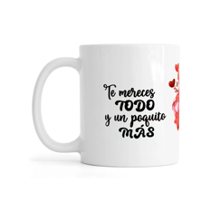 Jarra de cerámica blanca de 330 ml con diseño “Te mereces todo y un poquito más” Échale