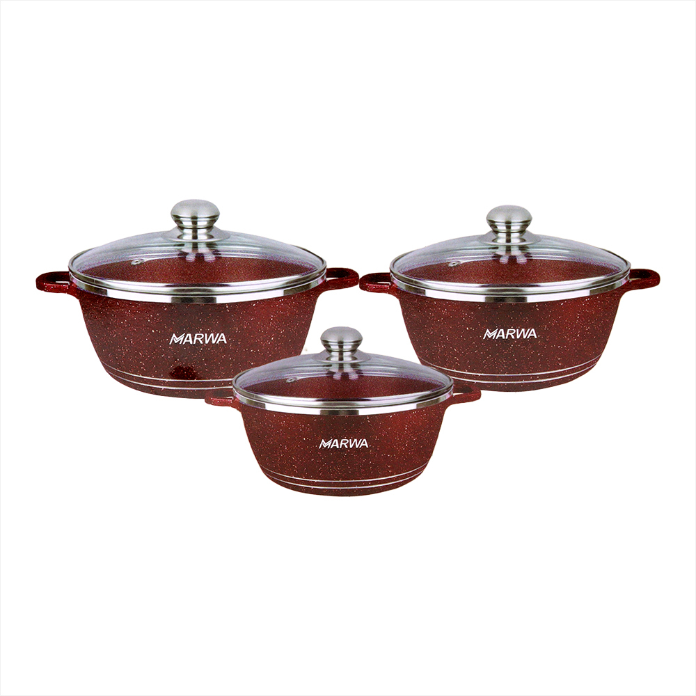 Juego de 3 cazuelas antiadherentes con tapa color rojo Marwa