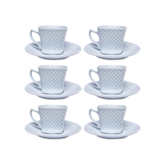 Juego de 6 tazas y platillos con relieve de cuadrados EGEA
