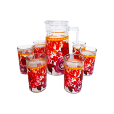 Juego de jarra de vidrio 1 L decorada con dahlias rojas con 6 vasos Lotus Home Collection