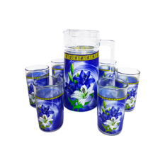 Juego de jarra de vidrio 1 L decorado con lirios azules con 6 vasos Lotus Home Collection