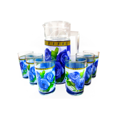 Juego de jarra de vidrio azul con 6 vasos Lotus Home Collection