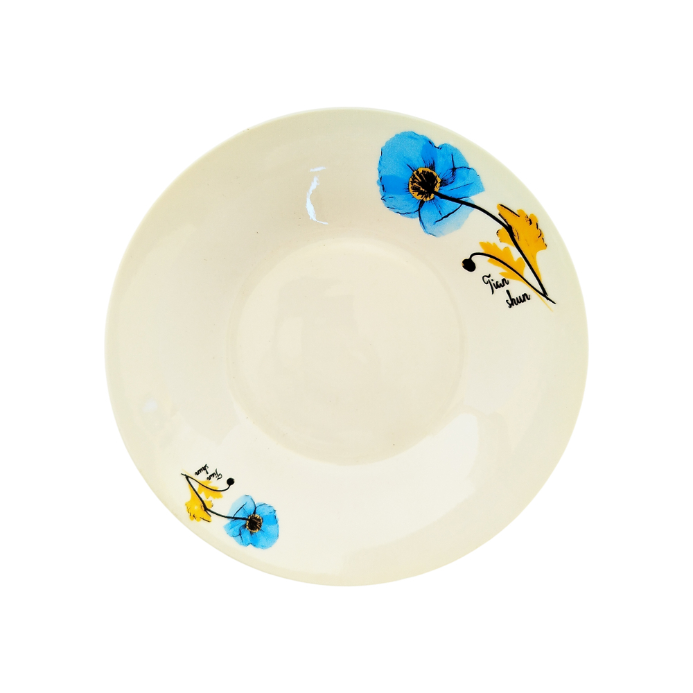 Plato de cerámica semi hondo con diseño floral azul K.M