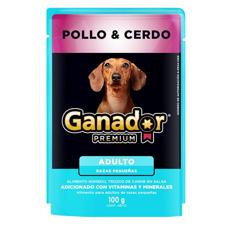 Alimento húmedo para perro adulto raza pequeña trozos de carne en salsa pollo y cerdo Ganador Premium (100 g / 3.5 oz)