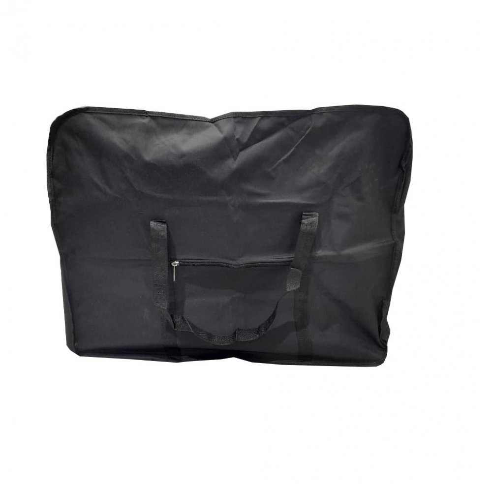 Maletín negro para viajes de Polyester y PVC, tiene 24 pulgadas de largo, 12 pulgadas de ancho y 18 pulgadas de alto.