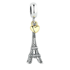Charm colgante de plata S925 estilo Pandora torre Eiffel con corazón