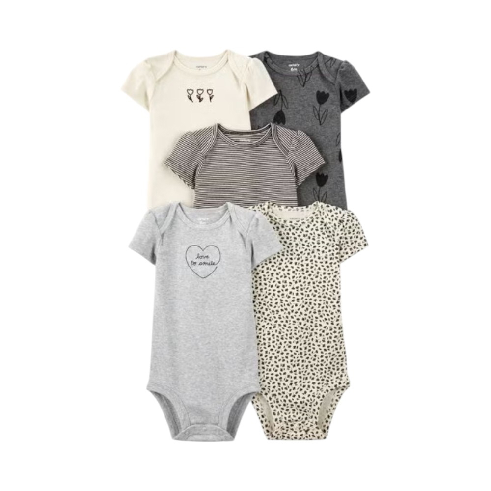 Conjunto de 5 bodys florales de manga corta para bebé Carter´s (Talla 6 meses)
